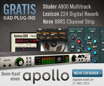 Wer ein Apollo QUAD Audio-Interface kauft, erhält die Studer A800 Tape Recorder, Lexicon 224 Digital Reverb und Neve 88RS Channel Strip Plug-Ins (Wert: $997) GRATIS dazu.