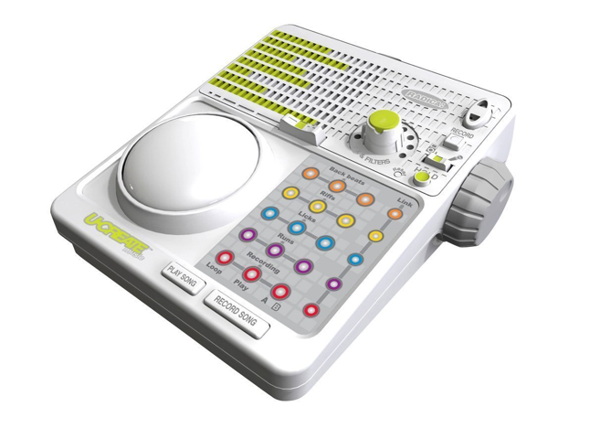 Mattels „Ucreate Music“ hat das Zeug, einen ähnlichen Kultstatus wie das Stylophone oder Speak’n’Spell zu erreichen: als Spielzeug gedacht bietet es Features, die jeden elektronischen Musiker faszinieren dürften. Das Gerät ist ein Loopplayer mit 8Bit/16KHz Sampler und 8 dicken LOFI-Effekten, von Reverse-Looper bis Flanger. Die FX lassen sich per Miniklinke und Miniklinke-Mic-Input live auf das Eingangssignal anwenden, Loops können über diese Eingänge oder das interne Mic aufgenommen werden. Der dicke Knopf regelt die Intensität der FX und leuchtet schön blau bei Gebrauch, was sich auf der Bühne gut macht.