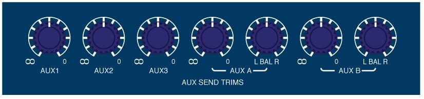 Wenn man einen Blick in die Mastersektion, genauer in den Aux-Master wirft, stellt man fest das alle Auxwege dort einen Outputfader haben. aux A und B bekamen dort zusätzlich noch Balanceregler spendiert.